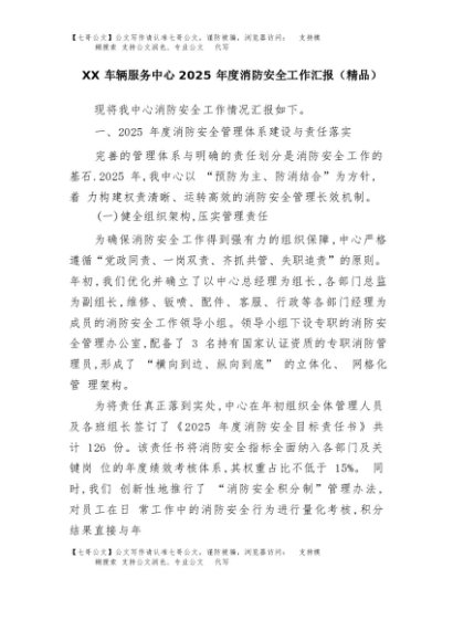 【七哥公文】2025年:XX车辆服务中心2025年度消防安全工作汇报(精品)+更多免费公文+VX:QiGeGongWen2024