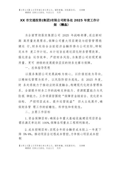 【七哥公文】2025年:XX市交通投资(集团)有限公司财务处2025年度工作计划(精品)+更多免费公文+VX:QiGeGongWen2024