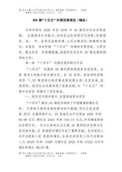 【七哥公文】2025年:XX镇“十五五”时期发展规划(精品)+更多免费公文+VX:QiGeGongWen2024