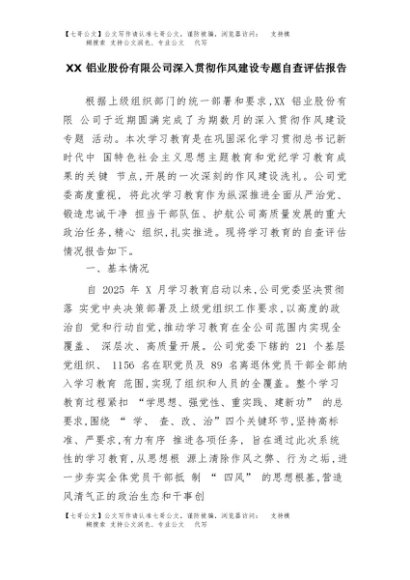 【七哥公文】2025年:XX铝业股份有限公司深入贯彻作风建设专题自查评估报告+更多免费公文+VX:QiGeGongWen2024
