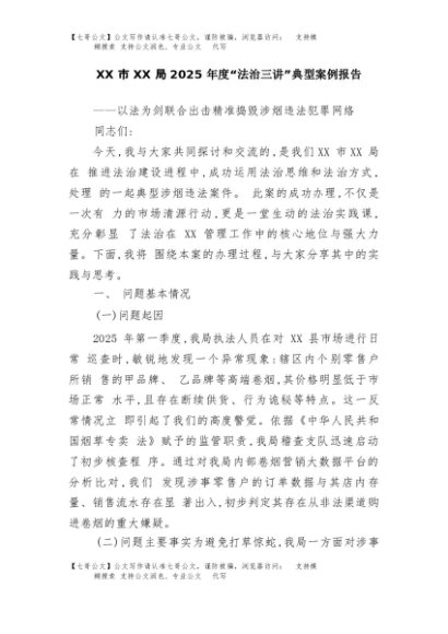 【七哥公文】2025年:XX市XX局2025年度“法治三讲”典型案例报告+更多免费公文+VX:QiGeGongWen2024