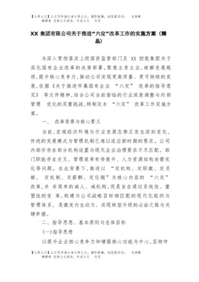 【七哥公文】2025年:XX集团有限公司关于推进“六定”改革工作的实施方案(精品)+更多免费公文+VX:QiGeGongWen2024