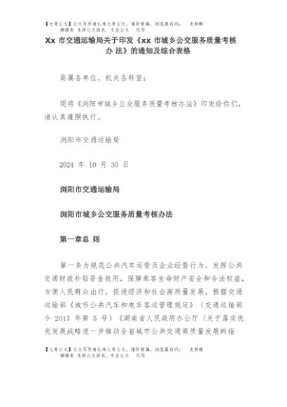 【七哥公文】2025年:Xx市交通运输局 关于印发《xx市城乡公交服务质量考核办法》的通知及综合表格+更多免费公文+VX:QiGeGongWen2024
