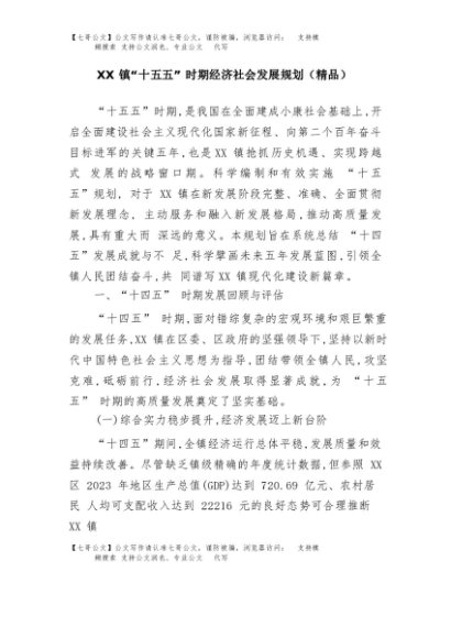 【七哥公文】2025年:XX镇“十五五”时期经济社会发展规划(精品)+更多免费公文+VX:QiGeGongWen2024