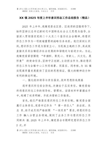 【七哥公文】2025年:XX镇2025年度上半年意识形态工作总结报告(精品)+更多免费公文+VX:QiGeGongWen2024