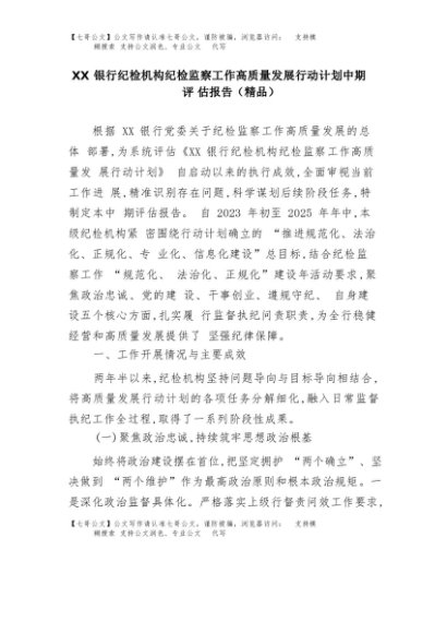 【七哥公文】2025年:XX银行纪检机构纪检监察工作高质量发展行动计划中期评估报告(精品)+更多免费公文+VX:QiGeGongWen2024