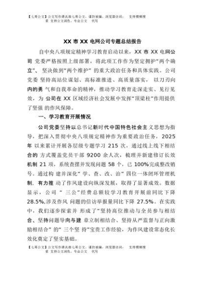/ 【七哥公文】2025年:XX市XX电网公司专题总结报告+更多免费公文+VX:QiGeGongWen2024