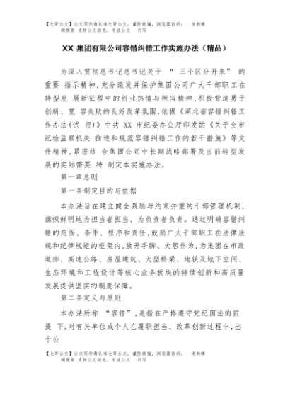 / 【七哥公文】2025年:XX集团有限公司容错纠错工作实施办法(精品)+更多免费公文+VX:QiGeGongWen2024