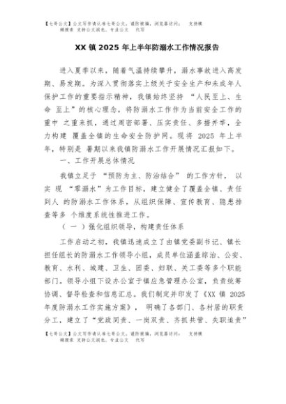 / 【七哥公文】2025年:XX镇2025年上半年防溺水工作情况报告+更多免费公文+VX:QiGeGongWen2024