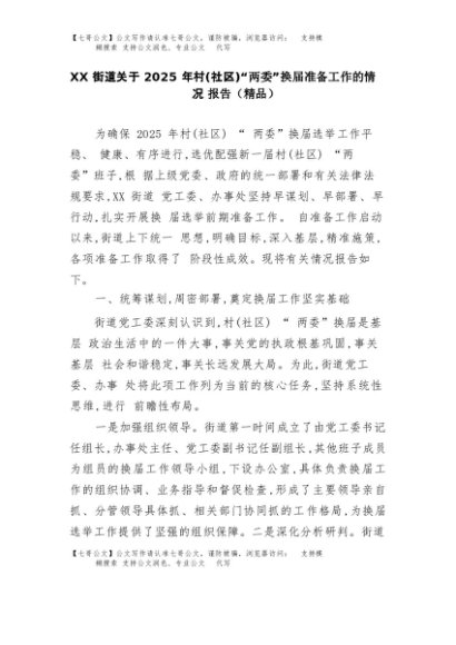 【七哥公文】2025年:XX街道关于2025年村(社区)“两委”换届准备工作的情况报告(精品)+更多免费公文+VX:QiGeGongWen2024