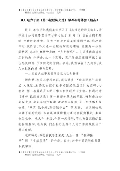 【七哥公文】2025年:XX电力干部《习总书记经济文选》学习心得体会(精品)+更多免费公文+VX:QiGeGongWen2024
