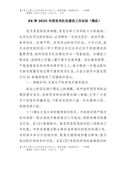 / 【七哥公文】2025年:XX市2025年度党员队伍建设工作总结(精品)+更多免费公文+VX:QiGeGongWen2024