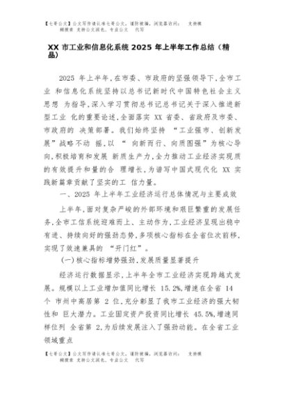 【七哥公文】2025年:XX市工业和信息化系统2025年上半年工作总结(精品)+更多免费公文+VX:QiGeGongWen2024