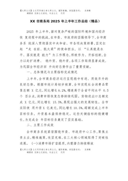 / 【七哥公文】2025年:XX市商务局2025年上半年工作总结(精品)+更多免费公文+VX:QiGeGongWen2024