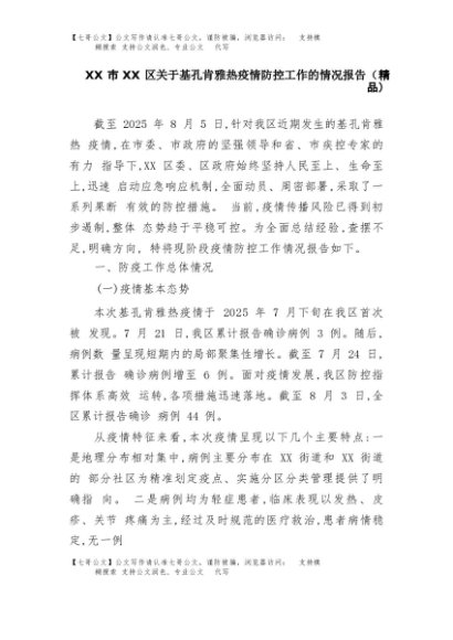 【七哥公文】2025年:XX市XX区关于基孔肯雅热疫情防控工作的情况报告(精品)+更多免费公文+VX:QiGeGongWen2024