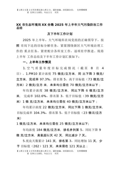 【七哥公文】2025年:XX市生态环境局XX分局2025年上半年大气污染防治工作总结及下半年工作计划+更多免费公文+VX:QiGeGongWen2024