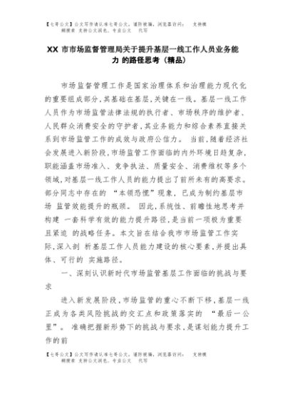 【七哥公文】2025年:XX市市场监督管理局关于提升基层一线工作人员业务能力的路径思考(精品)+更多免费公文+VX:QiGeGongWen2024