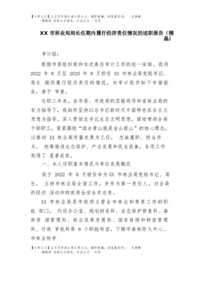 【七哥公文】2025年:XX市林业局局长任期内履行经济责任情况的述职报告(精品)+更多免费公文+VX:QiGeGongWen2024