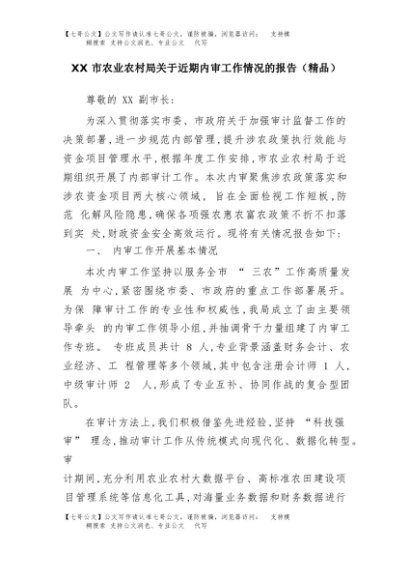 【七哥公文】2025年:XX市农业农村局关于近期内审工作情况的报告(精品)+更多免费公文+VX:QiGeGongWen2024