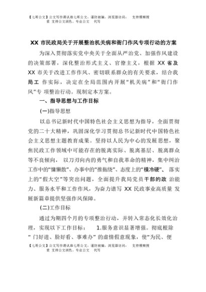 【七哥公文】2025年:XX市民政局关于开展整治机关病和衙门作风专项行动的方案+更多免费公文+VX:QiGeGongWen2024