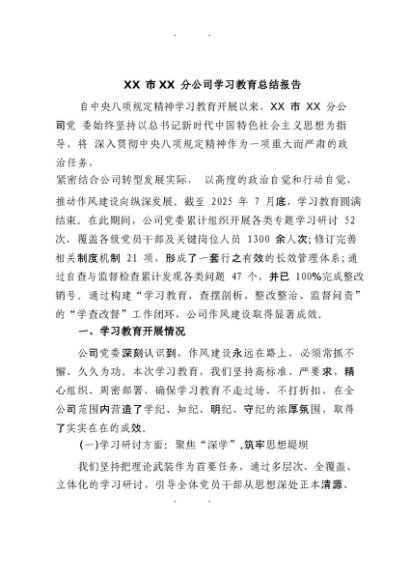 / 【七哥公文】2025年:XX市XX分公司学习教育总结报告+更多免费公文+VX:QiGeGongWen2024