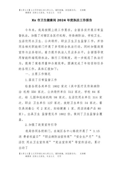 / 【七哥公文】2025年:Xx市卫生健康局 2024年度执法工作报告+更多免费公文+VX:QiGeGongWen2024