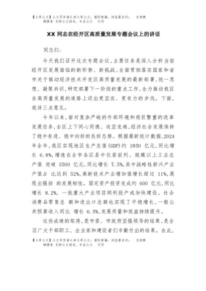 / 【七哥公文】2025年:XX同志在经开区高质量发展专题会议上的讲话+更多免费公文+VX:QiGeGongWen2024