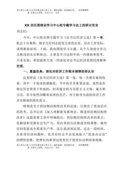 / 【七哥公文】2025年:XX在区委理论学习中心组专题学习会上的研讨发言+更多免费公文+VX:QiGeGongWen2024