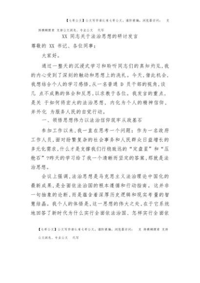 / 【七哥公文】2025年:XX同志关于法治思想的研讨发言+更多免费公文+VX:QiGeGongWen2024