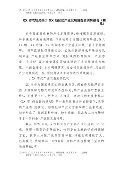 【七哥公文】2025年:XX市农牧局关于XX地区奶产业发展情况的调研报告(精品)+更多免费公文+VX:QiGeGongWen2024