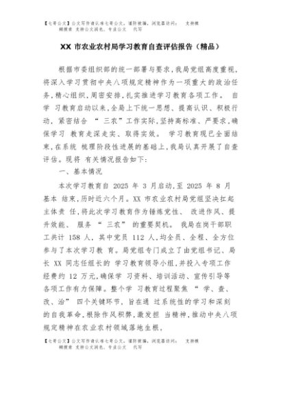 / 【七哥公文】2025年:XX市农业农村局学习教育自查评估报告(精品)+更多免费公文+VX:QiGeGongWen2024