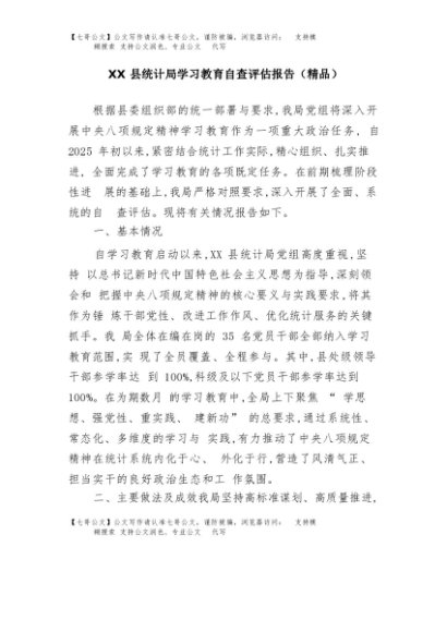 / 【七哥公文】2025年:XX县统计局学习教育自查评估报告(精品)+更多免费公文+VX:QiGeGongWen2024