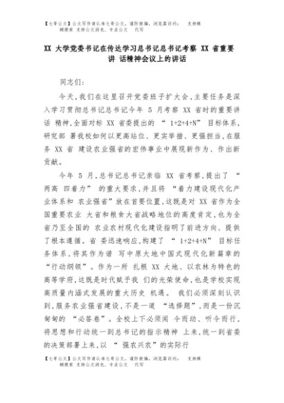 【七哥公文】2025年:XX大学党委书记在传达学习总书记总书记考察XX省重要讲话精神会议上的讲话+更多免费公文+VX:QiGeGongWen2024