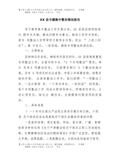 / 【七哥公文】2025年:XX县专题集中整治情况报告+更多免费公文+VX:QiGeGongWen2024