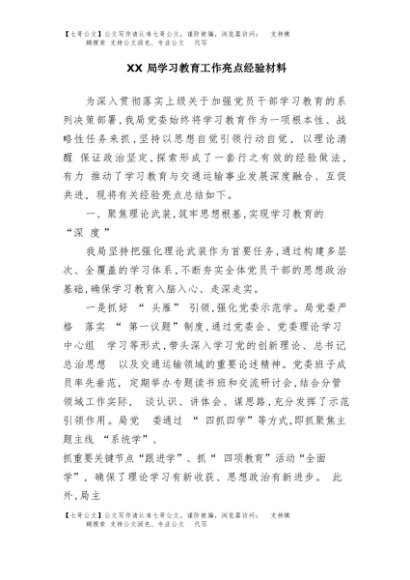 / 【七哥公文】2025年:XX局学习教育工作亮点经验材料+更多免费公文+VX:QiGeGongWen2024