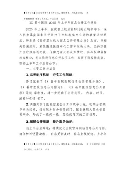 / 【七哥公文】2025年:XX县中医院2025年上半年信息公开工作总结+更多免费公文+VX:QiGeGongWen2024