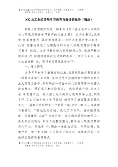 / 【七哥公文】2025年:XX县工业经济局学习教育自查评估报告+更多免费公文+VX:QiGeGongWen2024