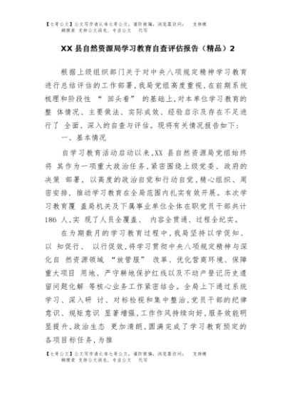 / 【七哥公文】2025年:XX县自然资源局学习教育自查评估报告(精品)2+更多免费公文+VX:QiGeGongWen2024
