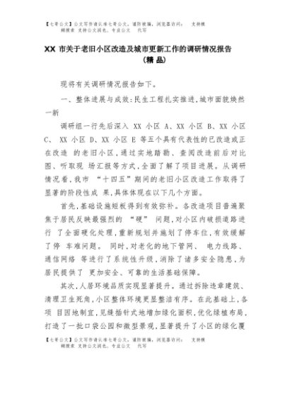 【七哥公文】2025年:XX市关于老旧小区改造及城市更新工作的调研情况报告(精品)+更多免费公文+VX:QiGeGongWen2024