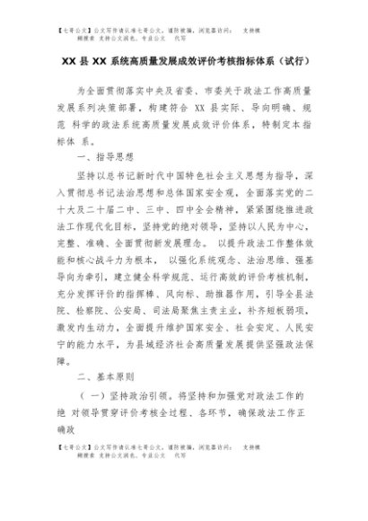 【七哥公文】2025年:XX县XX系统高质量发展成效评价考核指标体系(试行)+更多免费公文+VX:QiGeGongWen2024