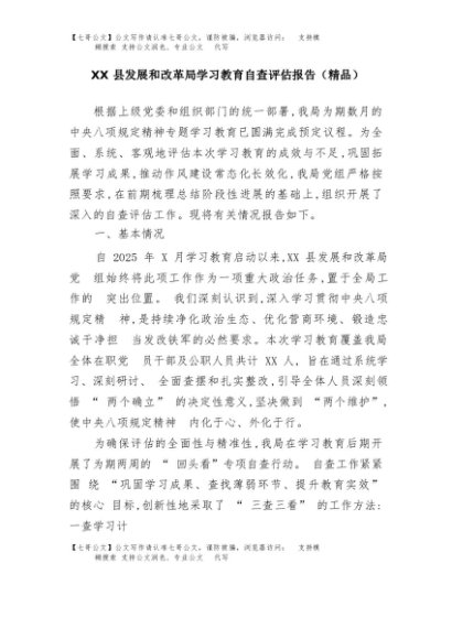/ 【七哥公文】2025年:XX县发展和改革局学习教育自查评估报告(精品)+更多免费公文+VX:QiGeGongWen2024