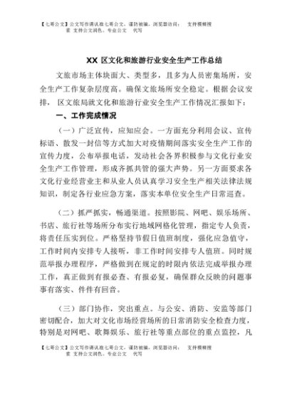 / 【七哥公文】2025年:XX区文化和旅游行业安全生产工作总结+更多免费公文+VX:QiGeGongWen2024