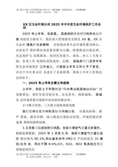 【七哥公文】2025年:XX区生态环境分局2025年半年度生态环境保护工作总结+更多免费公文+VX:QiGeGongWen2024