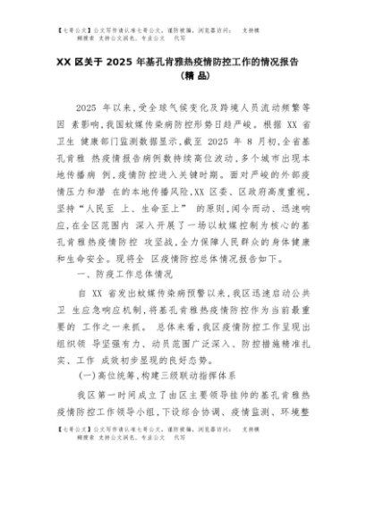 【七哥公文】2025年:XX区关于2025年基孔肯雅热疫情防控工作的情况报告(精品)+更多免费公文+VX:QiGeGongWen2024