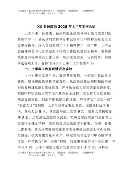 / 【七哥公文】2025年:XX县民政局2025年上半年工作总结+更多免费公文+VX:QiGeGongWen2024