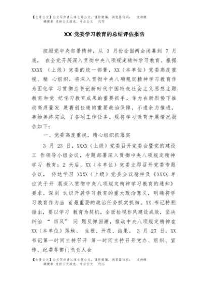 / 【七哥公文】2025年:XX党委学习教育的总结评估报告+更多免费公文+VX:QiGeGongWen2024
