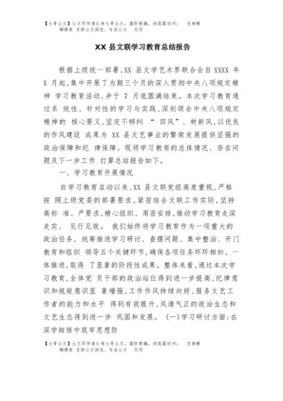 【七哥公文】2025年:XX县文联学习教育总结报告+更多免费公文+VX:QiGeGongWen2024
