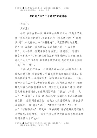 / 【七哥公文】2025年:XX县人大“三个意识”党课讲稿+更多免费公文+VX:QiGeGongWen2024