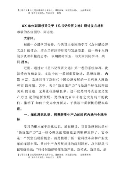 【七哥公文】2025年:XX单位副职领导关于《总书记经济文选》研讨发言材料+更多免费公文+VX:QiGeGongWen2024