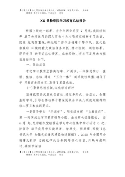 / 【七哥公文】2025年:XX县检察院学习教育总结报告+更多免费公文+VX:QiGeGongWen2024